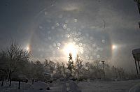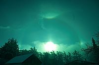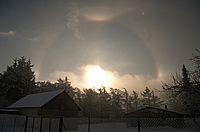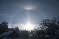Am Sonnabend den 29. Januar 2005 zwischen 10.30 und 10.45 Uhr beobachtete Halo-Ring um die Sonne über Greifswald. Gesehen an der Ryckresidenz.